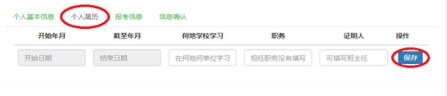 10.第二步,填寫個人簡歷,填寫完成后點擊“保存”。