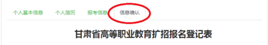 12.第四步,信息確認(rèn)。考生請認(rèn)真核對“甘肅省高等職業(yè)教育擴(kuò)招報名登記表”中所生成的各項信息是否準(zhǔn)確無誤,尤其是“報考院校”及“專業(yè)”是否與本人填報的報考信息一致。如提交后需要修改,請點擊“取消提交個人信息,撤回”,再對需要修改的項目進(jìn)行修改。