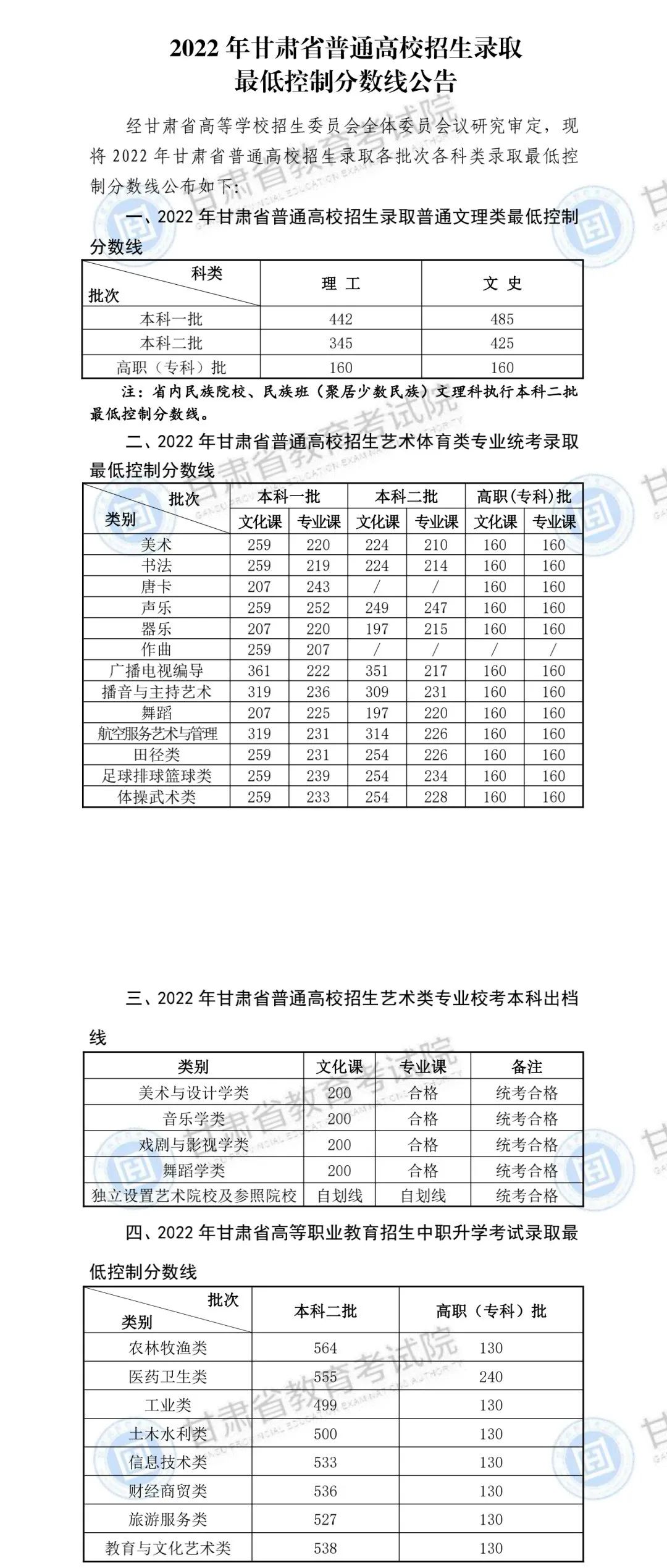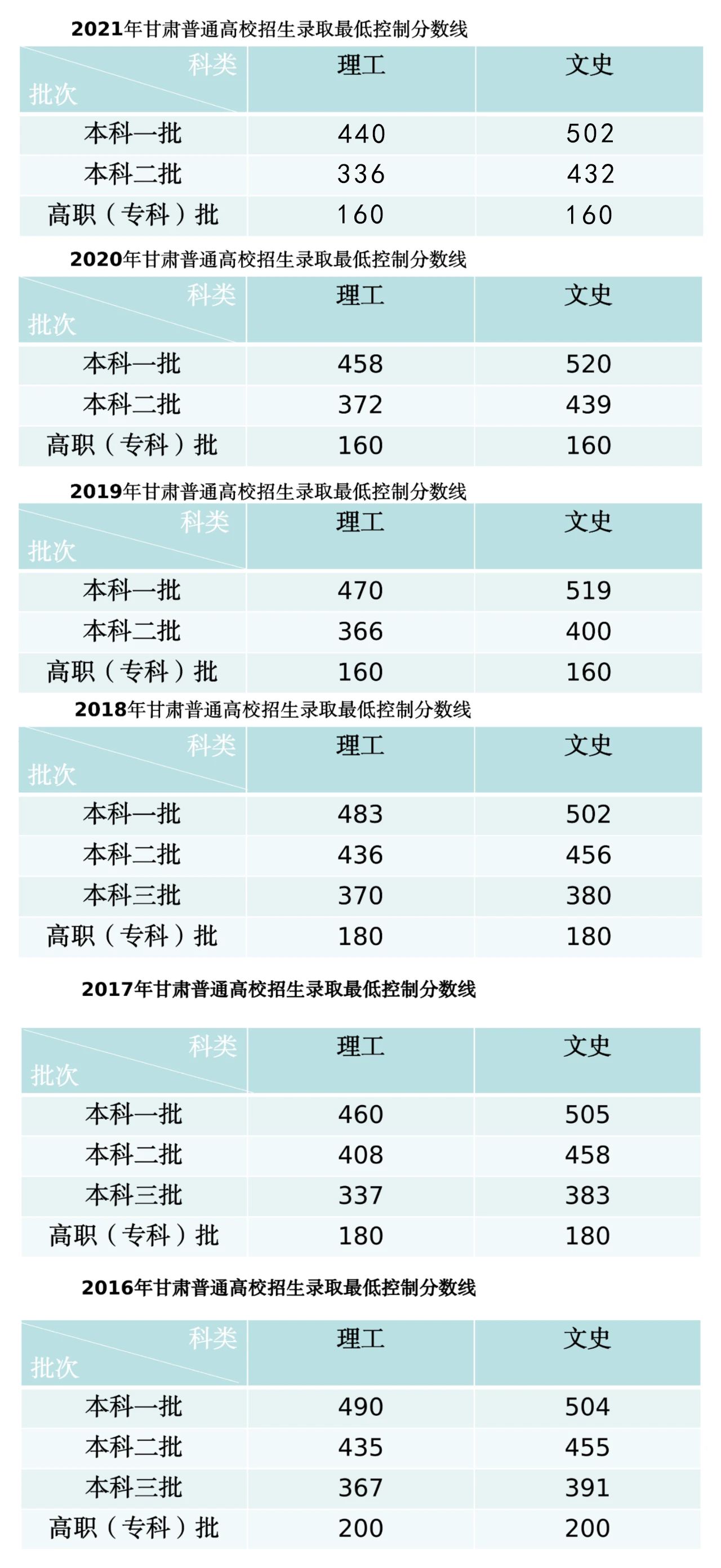 甘肅省歷年高考分?jǐn)?shù)線(2022年-2016年)