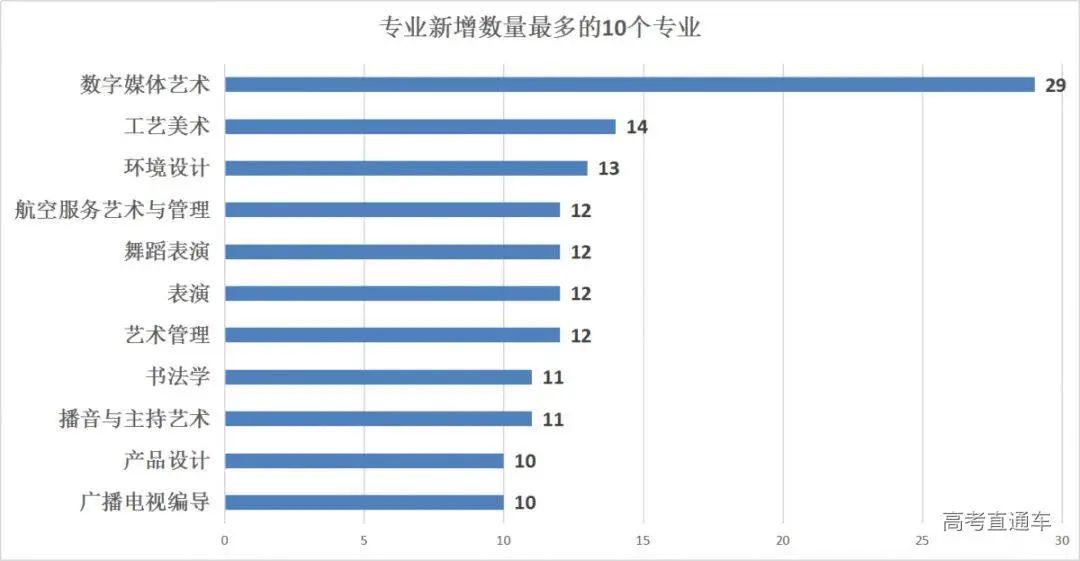 以下也為大家整理了新增備案本科專業(yè),預計2020年開始招生,其中有29個高校新開設了數字媒體藝術專業(yè),14個高校新開設了工藝美術專業(yè)。