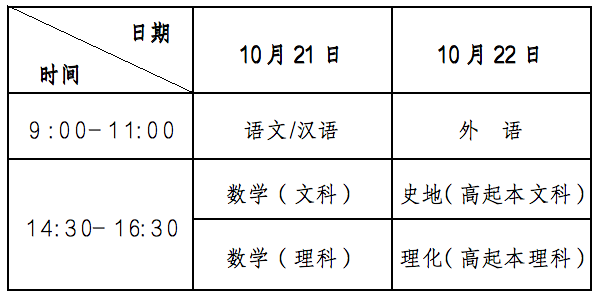 1.高中起點升本、專科考試時間表
