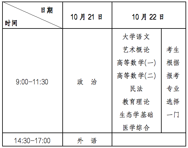 2.專科起點升本科考試時間表