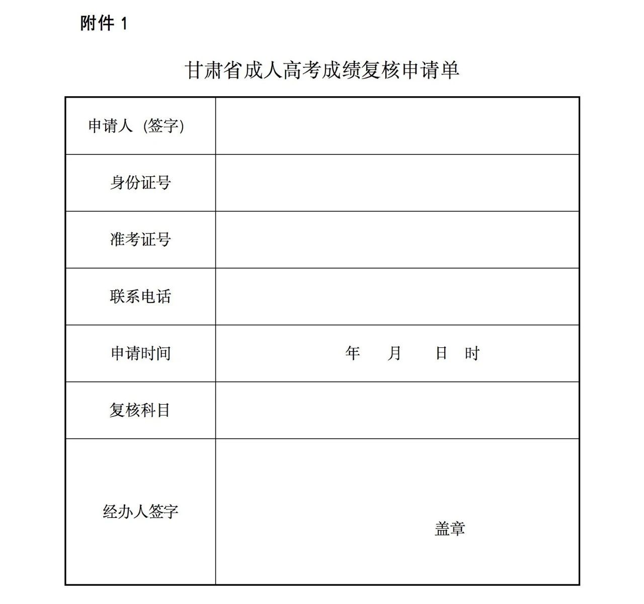 1.甘肅省成人高考成績復核申請單