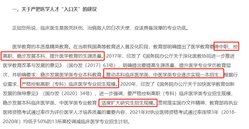 教育部已明確提出醫(yī)學教育需要“停中職、控高職”,穩(wěn)步發(fā)展本科。其中還特別提出臨床醫(yī)學類、中醫(yī)學類專業(yè)逐步實現(xiàn)一本招生,也就是說未來可能一本只是起點。