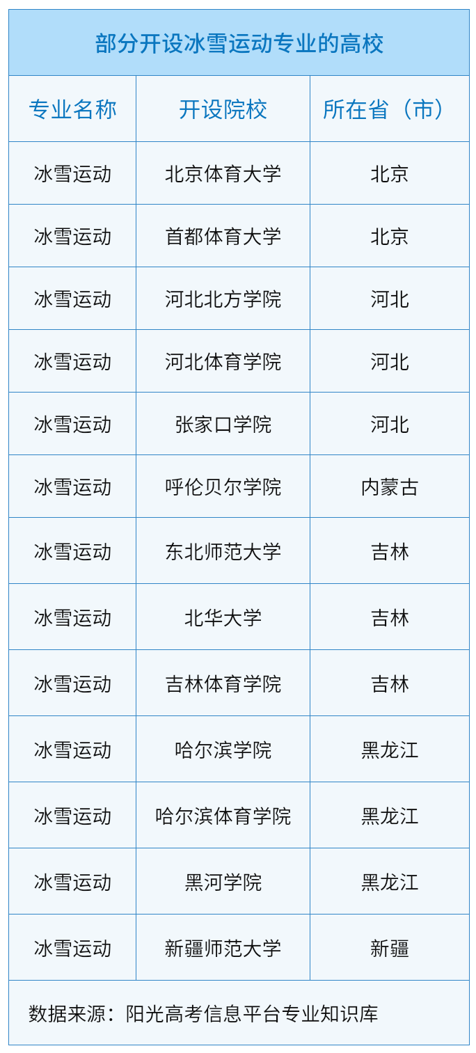 隨著國家對冰雪運動的重視,圍繞冰雪運動相關職業領域的人才需求大幅增長,體育類職業學院,也開始開設冰雪類專業。