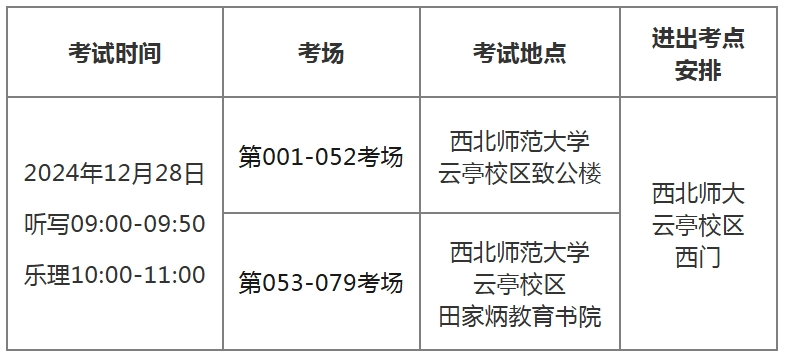 筆試考點設(shè)在西北師范大學(xué)云亭校區(qū)(地址:蘭州市安寧區(qū)安寧東路967號);