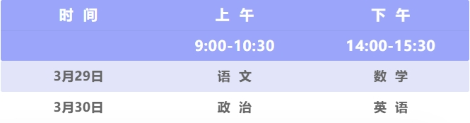 三、考試科目:語文、數學、政治、英語;考試分值:每科150分,總分600分,使用國家通用語言文字作答。