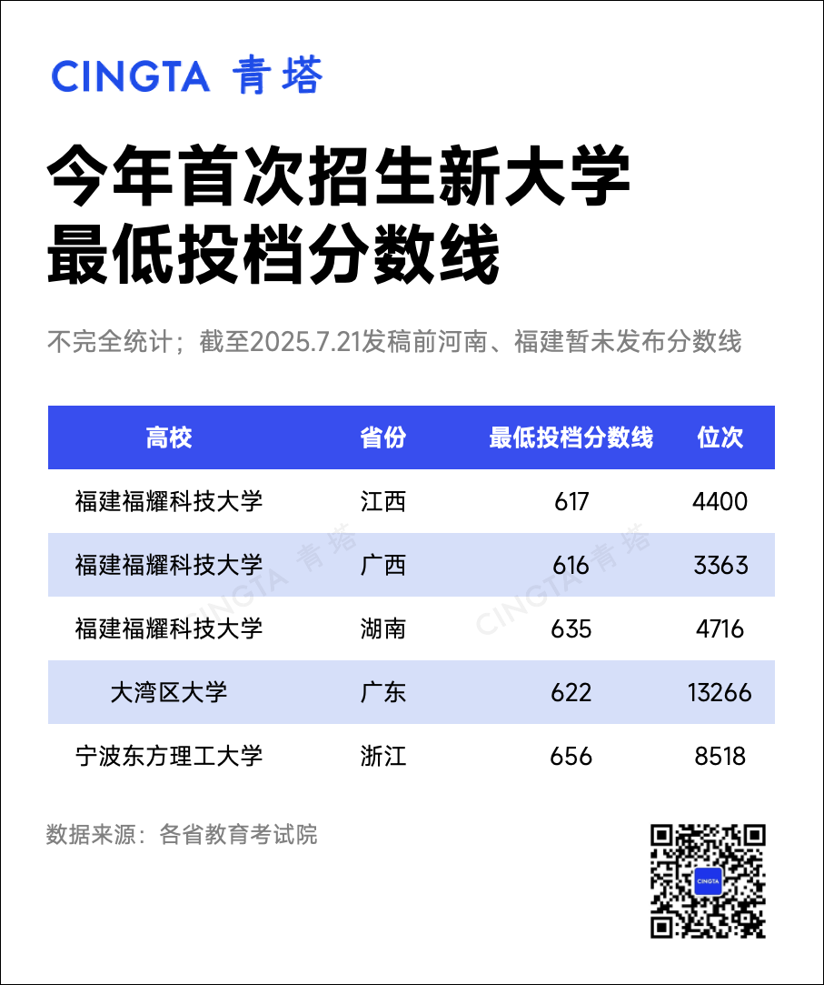 2025年本科普通批院校專業(yè)組投檔最低分?jǐn)?shù)線。今年首次招生的新大學(xué)——