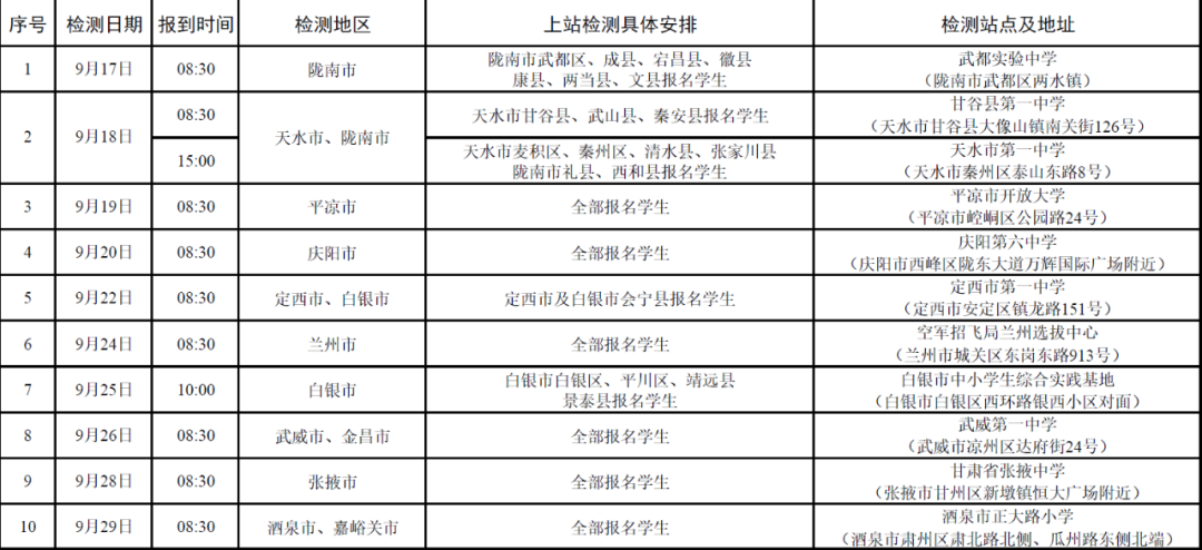 2026年度空軍招飛甘肅省初選檢測日程安排