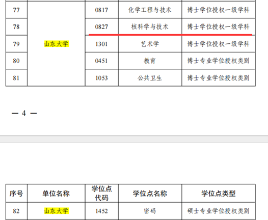 山東大學獲批化學工程與技術、核科學與技術、藝術學一級學科博士學位授權點,教育、公共衛生博士專業學位授權點,以及密碼碩士專業學位授權點。