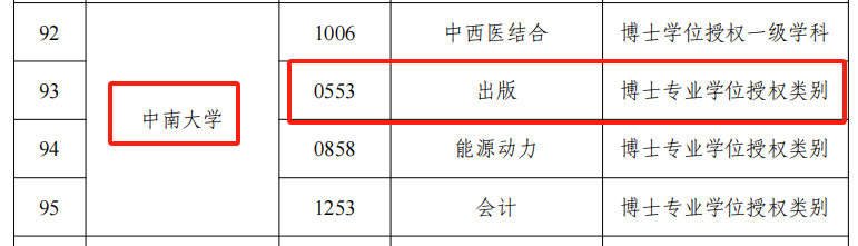 通知表明,中南大學出版、能源動力、會計博士專業學位授權點,中西醫結合一級學科博士學位授權點已正式獲批。自批準之日起,可開展研究生招生、培養以及學位授予工作。