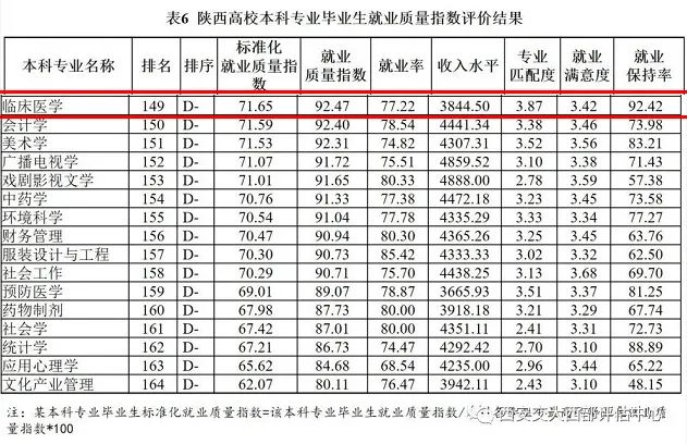 2019年陜西大學生就業(yè)質量報告中,臨床醫(yī)學位于D-類專業(yè),畢業(yè)生就業(yè)質量不佳。