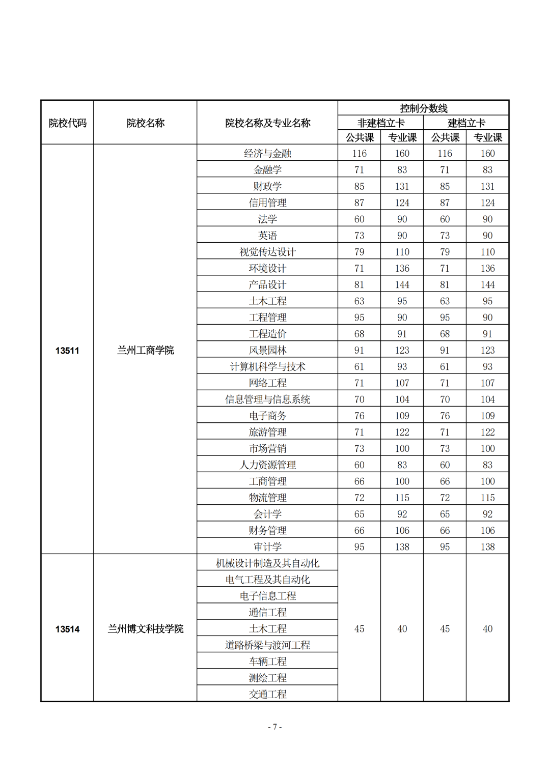 2021年甘肅省普通專升本首次招生錄取分?jǐn)?shù)線
