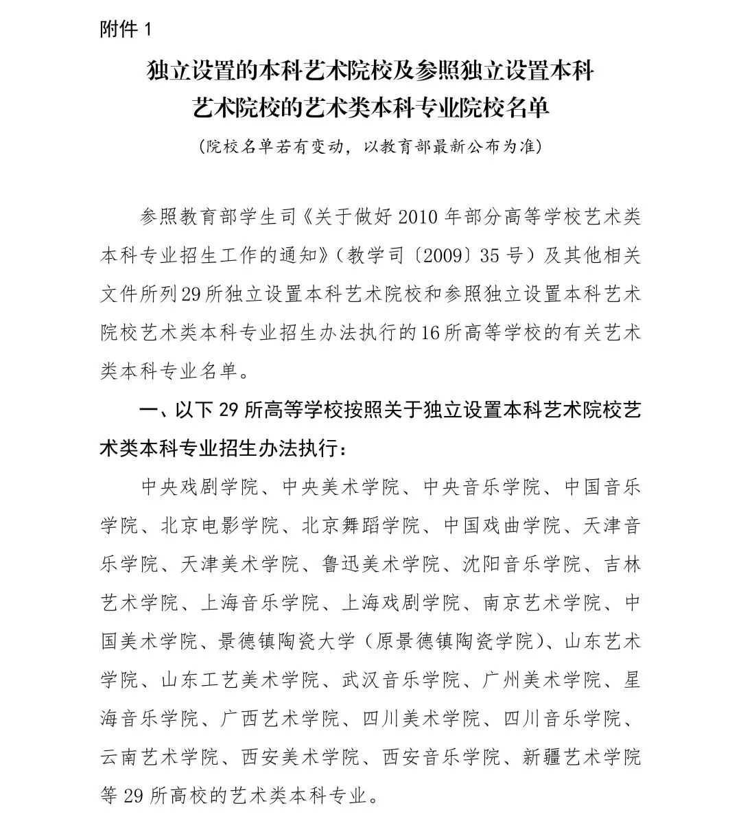 1.獨立設(shè)置的本科藝術(shù)院校及參照獨立設(shè)置本科藝術(shù)院校的藝術(shù)類本科專業(yè)院校名單