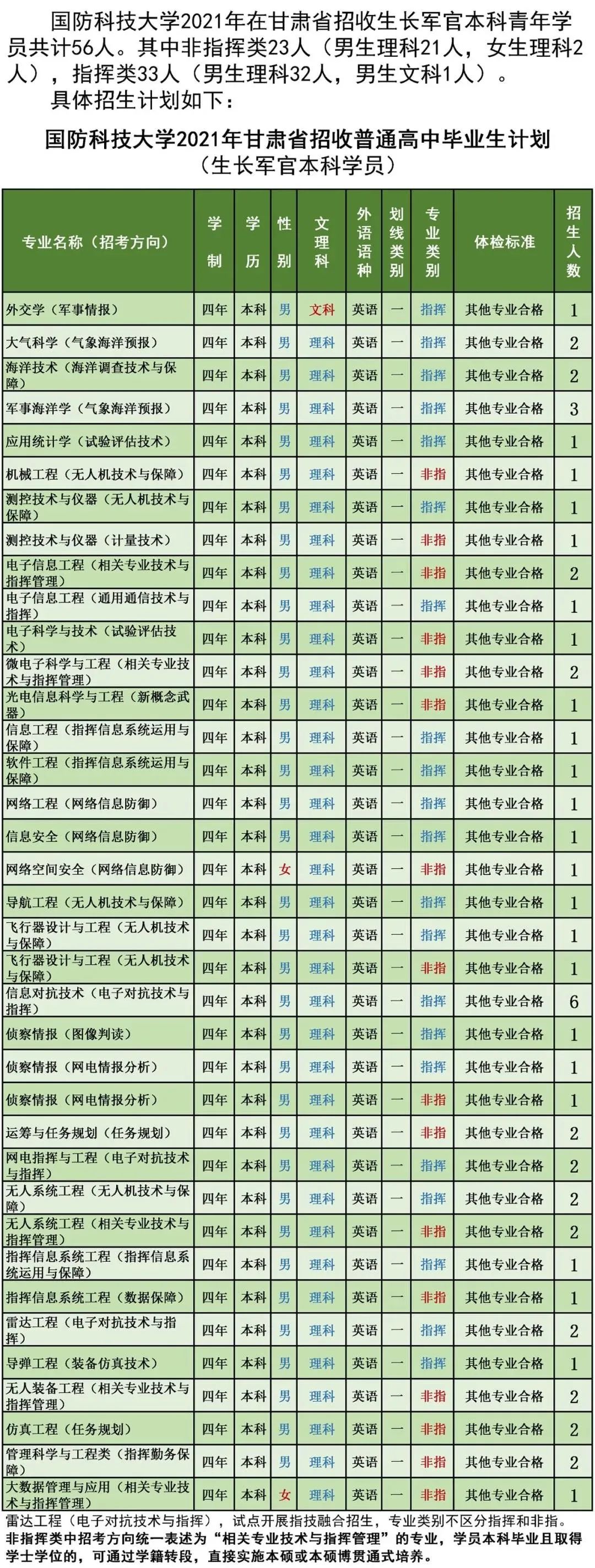 參加軍檢:政治考核合格的考生,由省軍區招生辦公室按照高考成績排名,按照理科男生1000人、女生110人,文科男生40人、女生6人確定參加軍檢考生。入圍考生持本人身份證、準考證、3日內核酸檢測結果及4張1寸正面免冠白底彩色照片按照指定時間地點參加軍檢,軍檢包括面試、心理檢測和體格檢查3項內容。嘉峪關市、酒泉市、東風場區考生在第20基地醫院組織軍檢,其余地區考生面試在西北民族大學和940醫院組織,具體時間安排為:6月24日,蘭州、白銀市考生及所有女生;6月25日,張掖、武威、金昌、定西市考生;6月26日,平涼、慶陽、天水、隴南市,臨夏、甘南州考生。面試結果當場告知考生。面試合格的考生參加職業基本適應性檢測(簡稱心理檢測),地點設在西北民族大學,時間安排與面試一致。心理檢測分為計算機檢測和心理訪談,計算機檢測結果分合格與不合格兩種,檢測不合格者參加心理訪談,心理訪談結論為最終結論,不再進行復議。