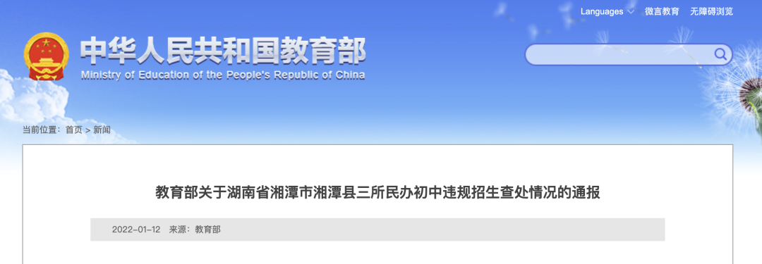 近日,教育部指導湖南省教育廳查處了湘潭市湘潭縣三所民辦初中違規招生問題,現就有關情況通報如下。
