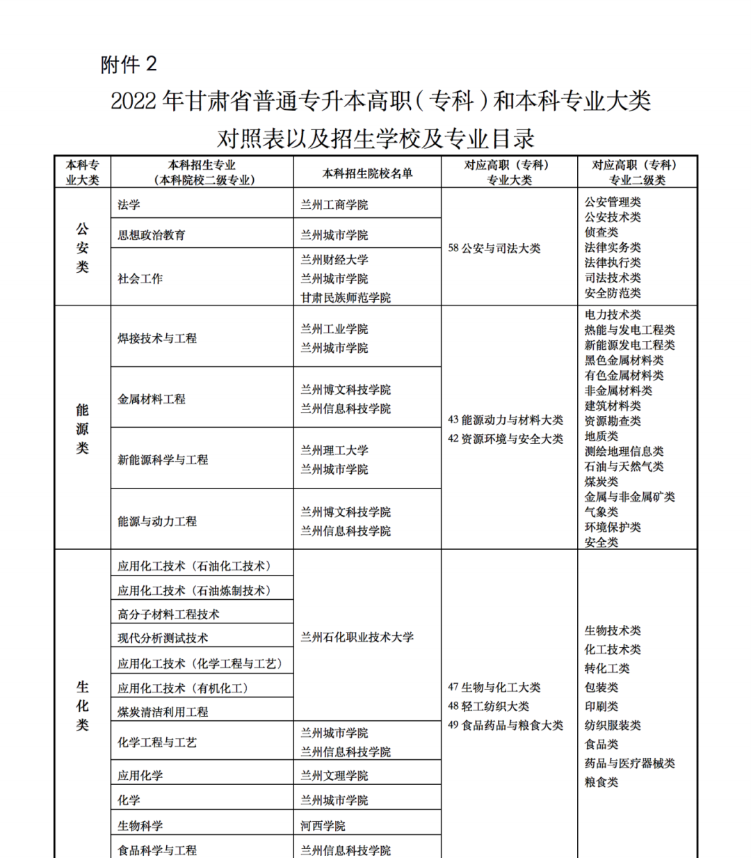 2.2022年甘肅省普通專升本高職(??疲┖捅究茖I大類對照表以及招生學校及專業目錄