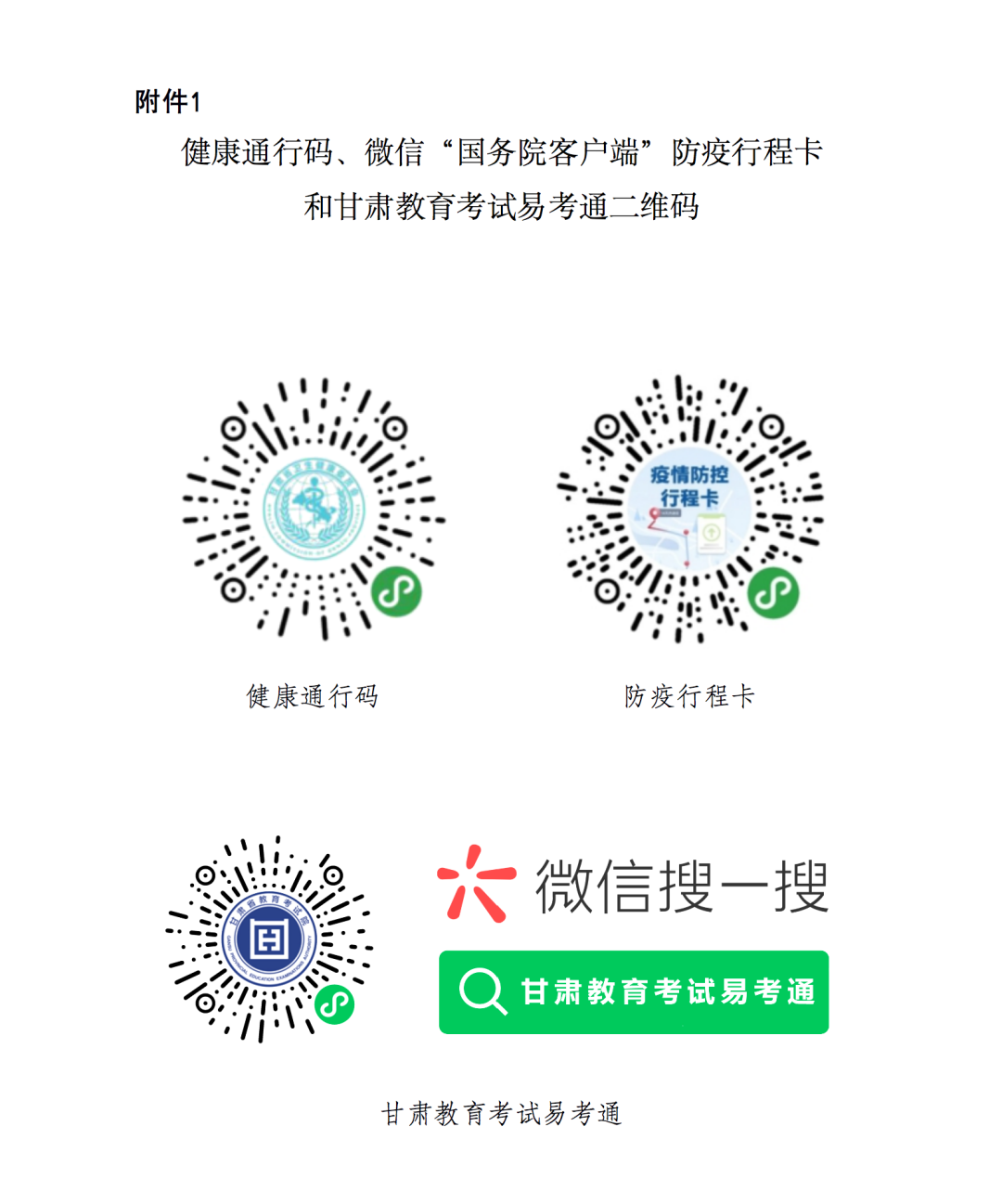 1.健康通行碼、微信“國務院客戶端”防疫行程卡和甘肅教育考試易考通二維碼