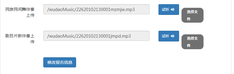 報(bào)名舞蹈類統(tǒng)考的考生,請(qǐng)于報(bào)名頁面下方上傳考試時(shí)所使用的伴奏曲目。