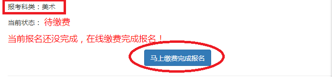 報(bào)名完成后,核對(duì)“報(bào)考類別”等內(nèi)容,確認(rèn)無誤后點(diǎn)擊“馬上繳費(fèi)完成報(bào)名”。