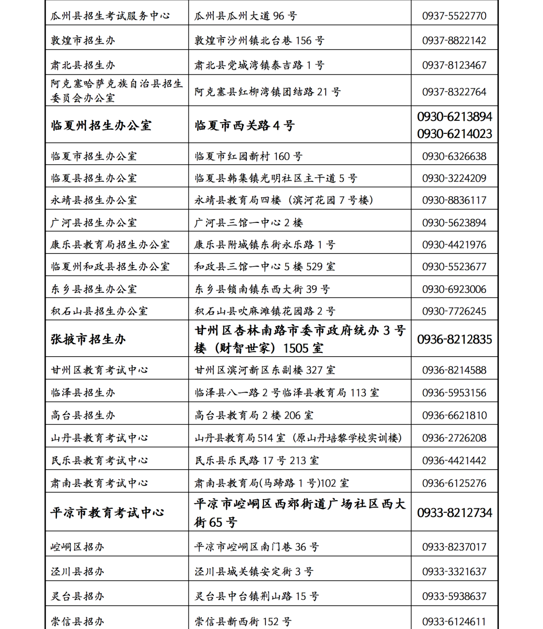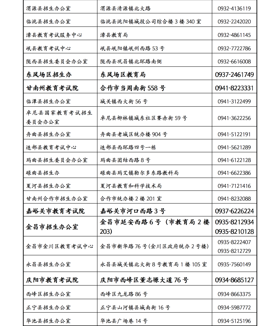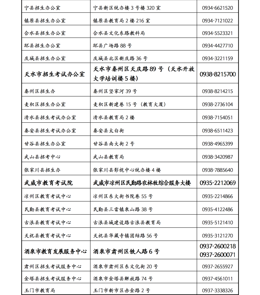 2022年甘肅省高考錄取期間各級(jí)教育考試招生機(jī)構(gòu)信訪接待點(diǎn)聯(lián)系方式