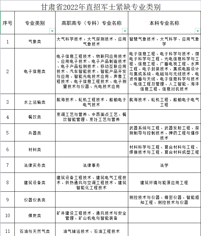 附件:甘肅省2022年直招軍士緊缺專業類別