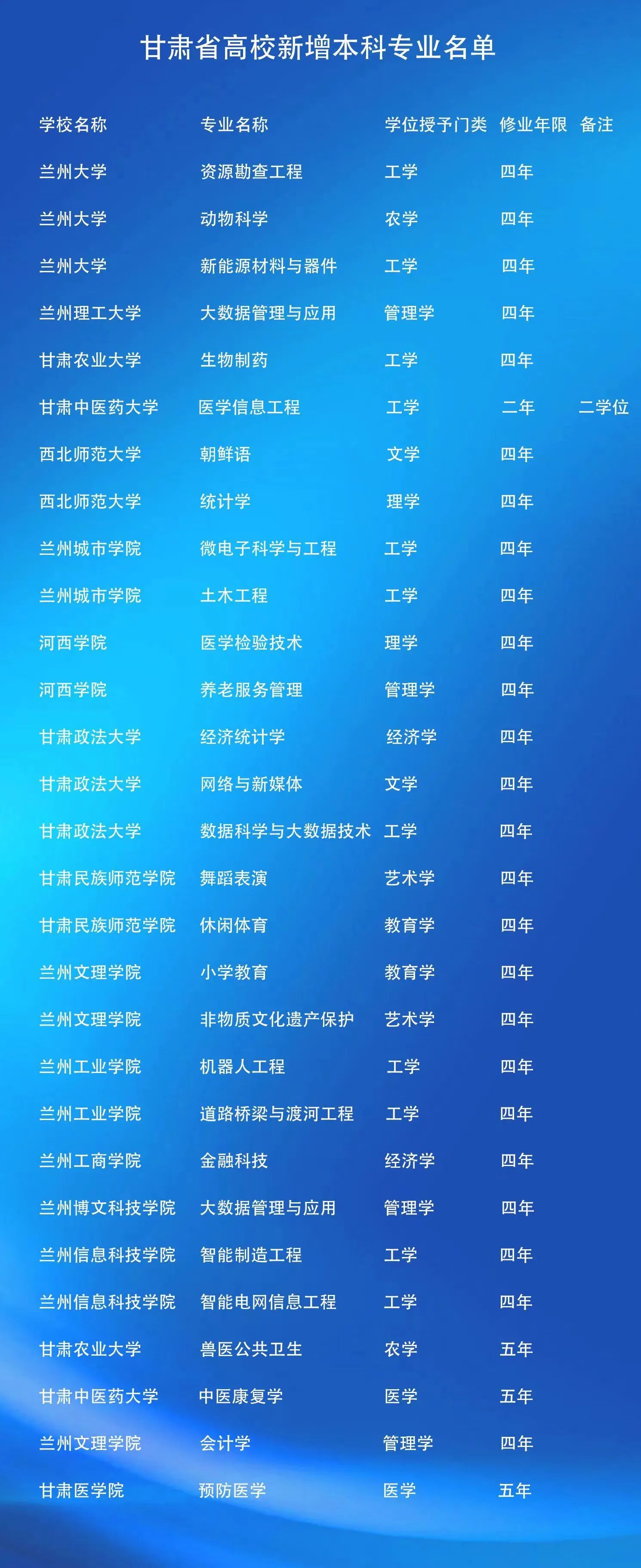 其中,甘肅省15所高校新增29個本科專業(yè),2022年開始招生。一起來了解一下→→