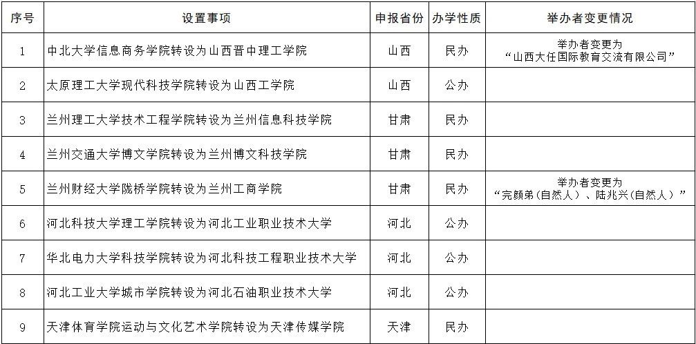 教育部發展規劃司表示,根據《高等教育法》《普通高等學校設置暫行條例》《普通本科學校設置暫行規定》和《關于加快推進獨立學院轉設工作的實施方案》等法律法規政策規定,經第七屆全國高等學校設置評議委員會專家考察和評議,并經黨組會審議,