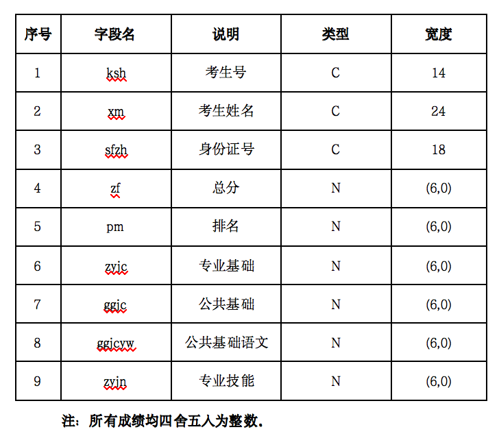 5.2023年甘肅省高等職業(yè)教育分類考試招生中職升學(xué)考試成績數(shù)據(jù)庫結(jié)構(gòu)