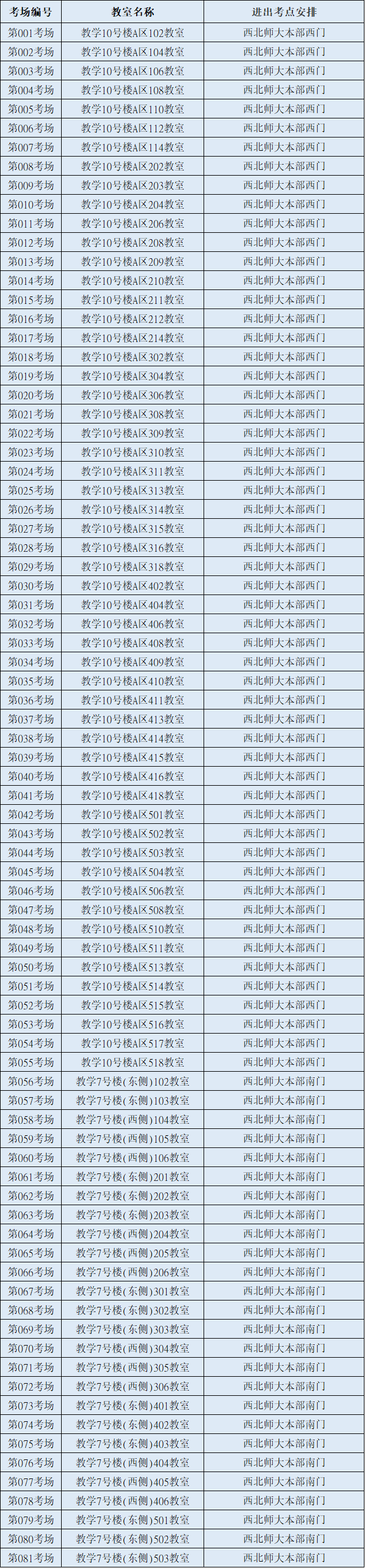 (一)2021年甘肅省普通高校招生戲劇與影視學類專業統一考試筆試考場安排