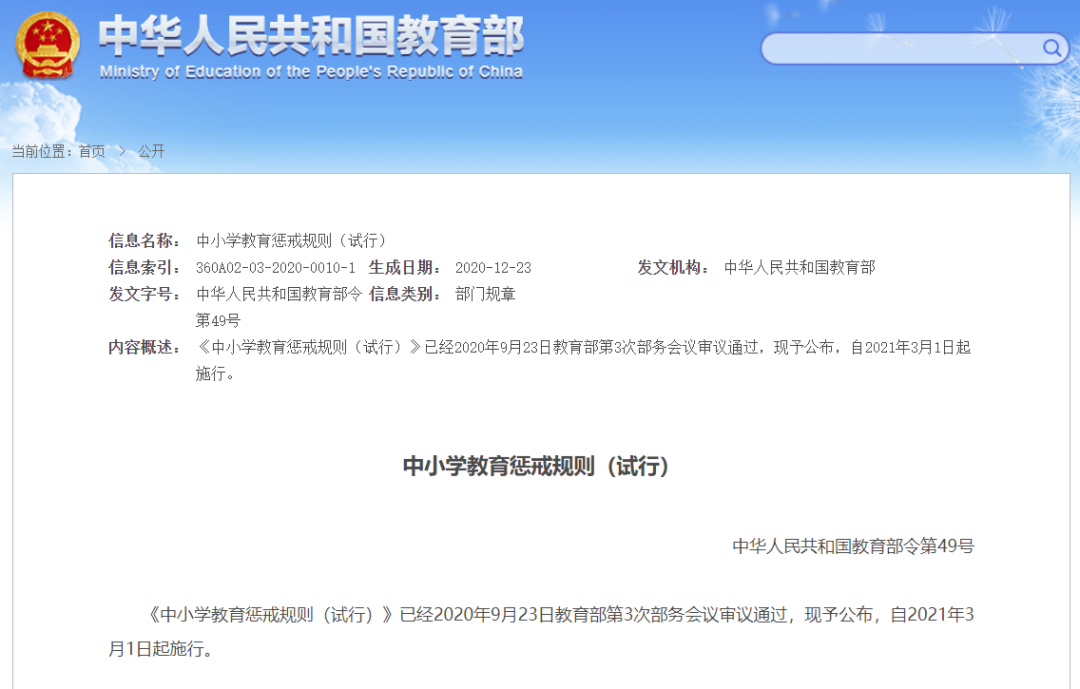 教育部最新出臺的《中小學教育懲戒規則(試行)》,將于3月1日起實施,明確學校、教師可以依法依規對學生實施懲戒教育。圍繞教育懲戒,社會上又掀起了新一輪熱議。
