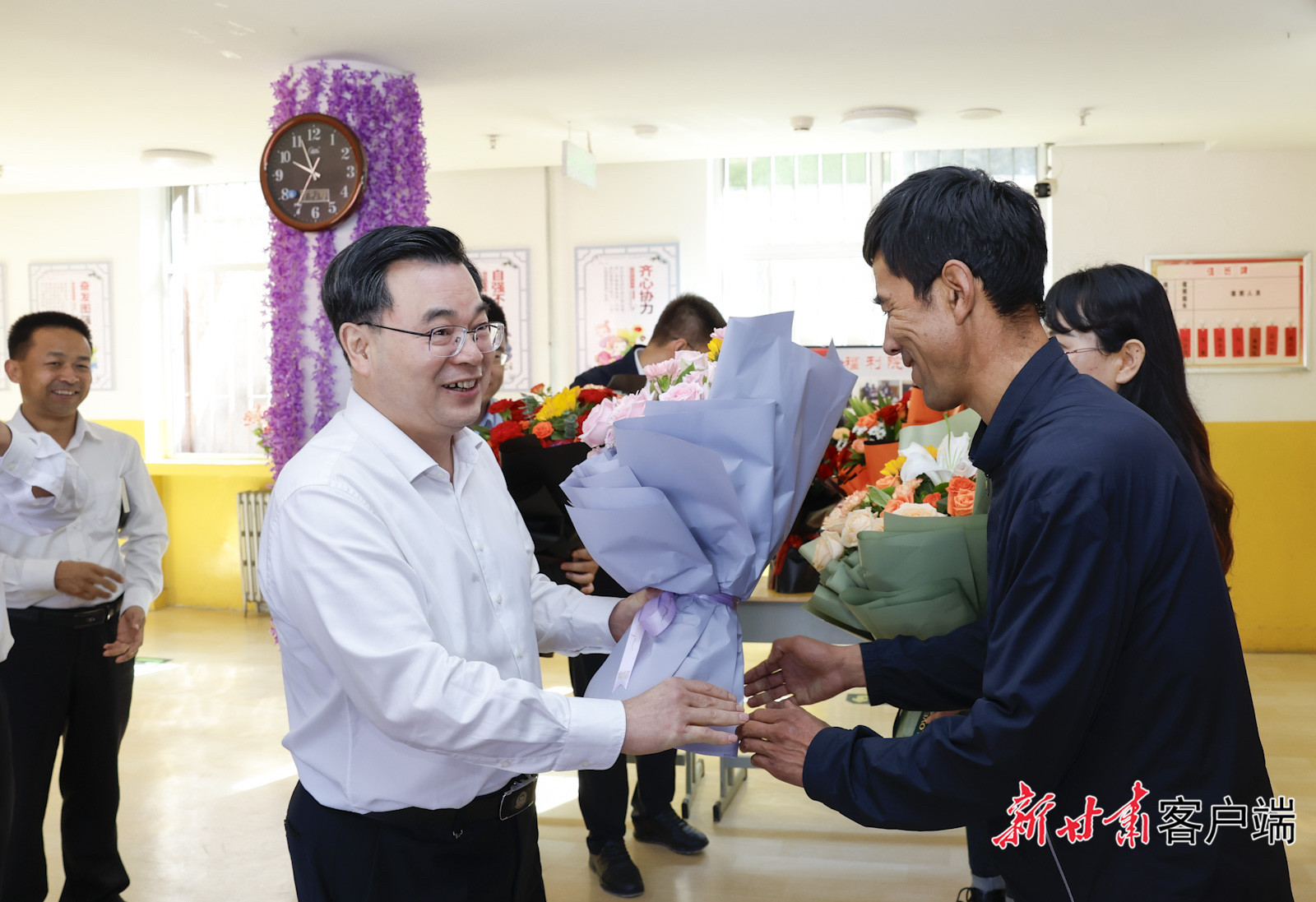 在東鄉縣兒童福利院,胡昌升為老師們送上鮮花,祝福大家教師節快樂。他說,你們愛生如子、視院如家,為孤殘兒童的教育成長傾注心血、付出真情,向你們表示感謝。胡昌升強調,要深入實施“結對幫扶·愛心甘肅”工程,傾情傾力當好孤殘兒童的“愛心爸爸”“愛心媽媽”,真正用愛浸潤心田、用心守護成長,讓孤殘兒童感受到親情的關愛和家的溫暖,讓他們在同一片藍天下健康成長。胡昌升看望了他結對幫扶的孤兒。第一次見面時,胡昌升就同她約定好每天養成寫日記的習慣,學會與自己交朋友。三個多月來,她堅持寫日記來記錄學習生活中的點點滴滴。胡昌升鼓勵她在新的學期里更加勤奮學習,一步步打好基礎,以優異學習成績感恩師長、回報社會。