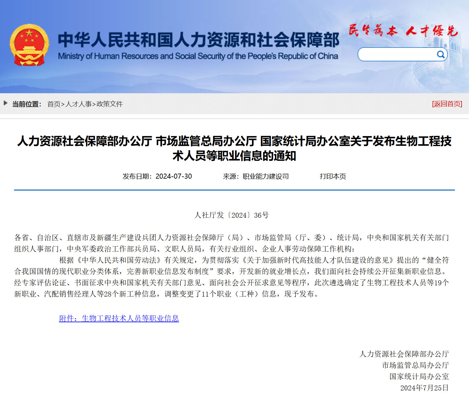 根據人社部2024年7月30日消息,人力資源和社會保障部會同國家市場監督管理總局、國家統計局正式發布了關于發布生物工程技術人員等職業信息的通知,宣布網絡主播成為國家新職業之一。