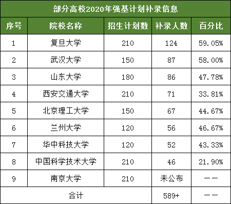 2020年新生入學后,多校發布補錄通知,從學校發布的數據來看,多校補錄近一半的人。還有多校沒有公布補錄人數。除了清北,其他學校幾乎都沒有招滿。為此,很多人都說強基“遇冷”。