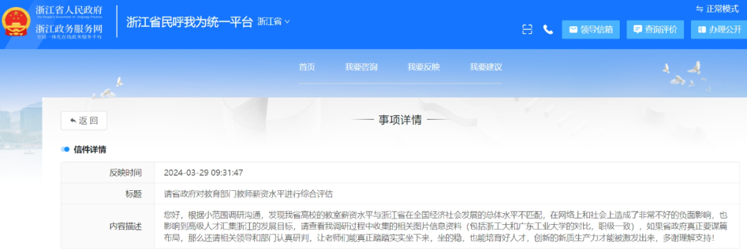 日前,有網(wǎng)友在浙江省人民政府網(wǎng)站上留言:“浙江省高校教師薪資水平與浙江省在全國經(jīng)濟社會發(fā)展的總體水平不匹配”,對此,浙江省教育廳答復稱,近年來省屬高校實行與績效考核結(jié)果和部分財務指標掛鉤的績效工資動態(tài)增長機制,教師工資收入穩(wěn)步提高。針對待遇差距,已著手開展改革完善省屬高校績效工資政策的研究,將在適當調(diào)節(jié)高校工資收入的基礎上,給予高校更大的收入分配自主權(quán)。