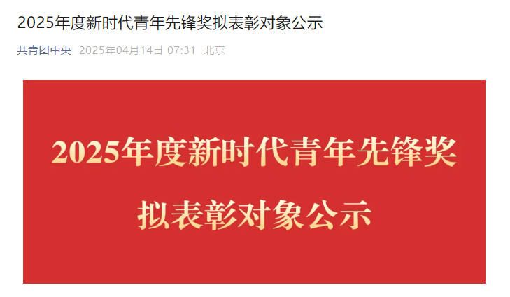 2025年度新時(shí)代青年先鋒獎(jiǎng)擬表彰對(duì)象名單