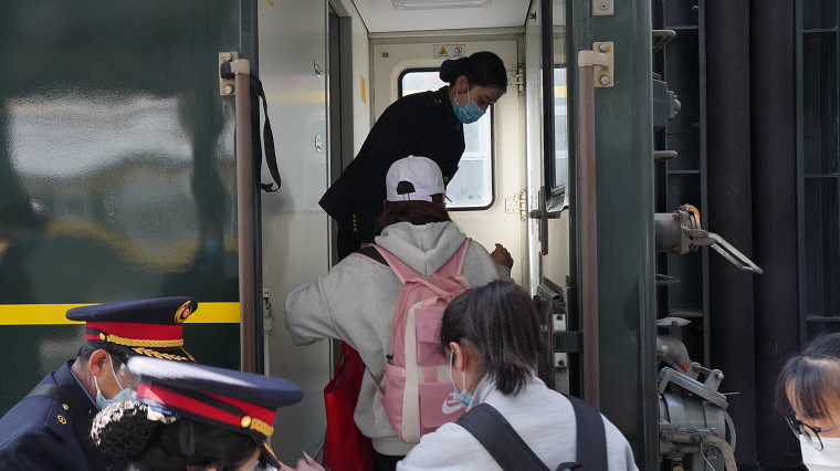 3月13日11時整,中國鐵路蘭州局集團有限公司開行的甘肅蘭州至新疆和田K4091次“點對點”學生專列駛出蘭州火車站,923名學生先后在蘭州、武威車站上車,搭乘此次列車開啟了返校溫馨之旅。