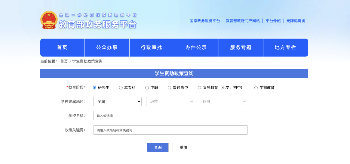 2.直接訪問“學生資助政策查詢服務”鏈接(https://zwfw.moe.gov.cn/zczx/)。