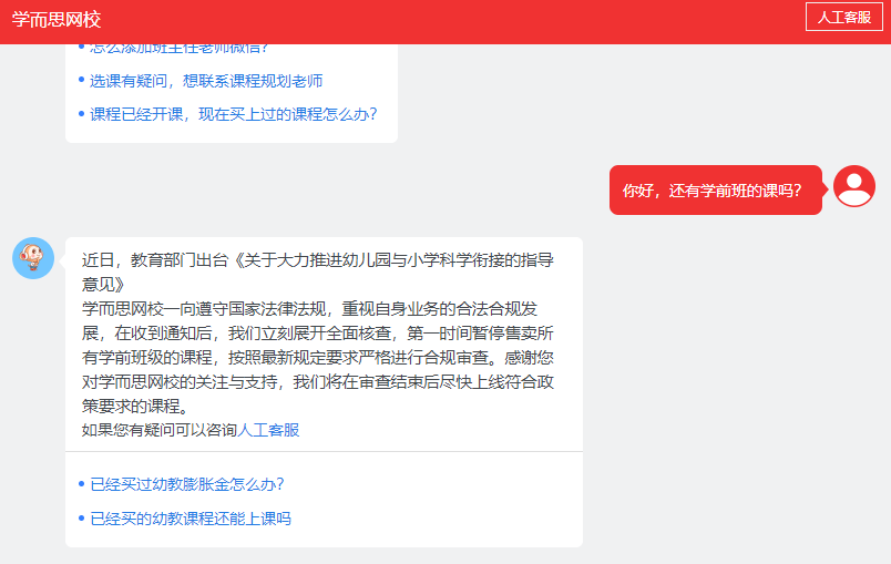 前不久,教育部重拳出擊,發布《關于大力推進幼兒園與小學科學銜接的指導意見》。指導意見指出,各級教育部門要會同有關部門持續加大對校外培訓機構、小學、幼兒園違反教育規律行為的治理力度,開展專項治理。落實國家有關規定,校外培訓機構不得對學前兒童違規進行培訓。指導意見明確指出,小學嚴格執行免試就近入學,嚴禁以各類考試、競賽、培訓成績或證書等作為招生依據,堅持按課程標準零起點教學。幼兒園滿足需要的地方,小學不得舉辦學前班。幼兒園不得提前教授小學課程內容,不得布置讀寫算家庭作業,不得設學前班,幼兒園出現大班幼兒流失的情況,應及時了解原因和去向,并向當地教育部門報告。教育部門應根據有關線索,對接收學前兒童違規開展培訓的校外培訓機構進行嚴肅查處并列入黑名單,將黑名單信息納入全國信用信息共享平臺,按有關規定實施聯合懲戒。對辦學行為嚴重違規的幼兒園和小學,追究校長、園長和有關教師的責任。華東師范大學教育學部教授華愛華表示,上述指導意見告訴我們,要使幼小之間的坡度變緩,必須加強兩個學段之間教育的連續性,同時改變是幼兒園向小學靠攏,還是小學向幼兒園靠攏的思考邏輯。因為事實證明,幼兒園從兒童年齡特點出發,堅持“去小學化”的課改精神,要求小學向下銜接,而中小學從后繼學習的角度,堅持的是為升學做準備的實用邏輯,要求各學段逐級向上銜接,這種誰向誰靠攏的單向邏輯是很難妥協的。“雙向銜接”的提出,不僅讓我們看到,國家對解決違反幼兒身心發展規律,有損幼兒身心健康的幼兒園“小學化”問題治理的決心和力度,更讓我們看到高層對幼兒園“小學化”問題根源的判斷與把握。在教育部上述文件發布后,學而思網校、猿輔導、高途課堂等在線教育機構全面下架了針對學前兒童的課程。一些機構正在向此前已報名用戶退費。據悉,學而思網校客服4月27日上午接受咨詢時稱,“在收到通知后,我們立刻展開全面核查,第一時間暫停售賣所有學前班級的課程,按照最新規定要求嚴格進行合規審查。”但學而思網校客服還介紹,“我們將在審查結束后盡快上線符合政策要求的課程。”此外,猿輔導、高途課堂等在線教育機構也全面下架了學前課程。作業幫直播課和網易有道精品課還在售賣學前課程,但作業幫直播課的學前課程只有旗下鴨鴨AI課的啟蒙課程,以及名家的素質講座課程。網易有道精品課的2-7歲課程則包括少兒英語、數學思維啟蒙課,以及美術、科學、圍棋、編程等素質類課程。在線教育中充滿魚目混珠般的虛假宣傳,廣告當中夾雜各種優惠和誘惑,實際的教學卻和承諾的不符,家長在選擇在線教育時一定要謹慎再謹慎。一、盡可能尋找穩定、有聲譽、可信度比較高的大型在線教育機構;