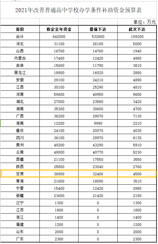 近日,財政部、教育部聯合印發《關于下達2021年改善普通高中學校辦學條件補助資金預算的通知》(以下簡稱《通知》),中央財政日前下達2021年改善普通高中學校辦學條件補助資金預算10.92億元,此前已提前下達53.28億元,共計64.2億元。資金將加大對困難地區和薄弱環節的支持力度,向因推動高考綜合改革而出現辦學條件困難的地區傾斜,加快補齊縣域普通高中短板。