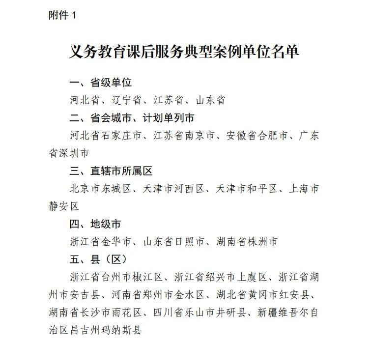 。教育部遴選確定首批23個義務教育課后服務典型案例單位,并梳理匯總了有關創新舉措和典型經驗,請各地結合實際認真學習借鑒。