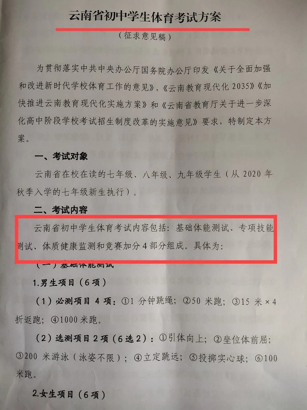 云南省擬把中考體育分值提升到100分