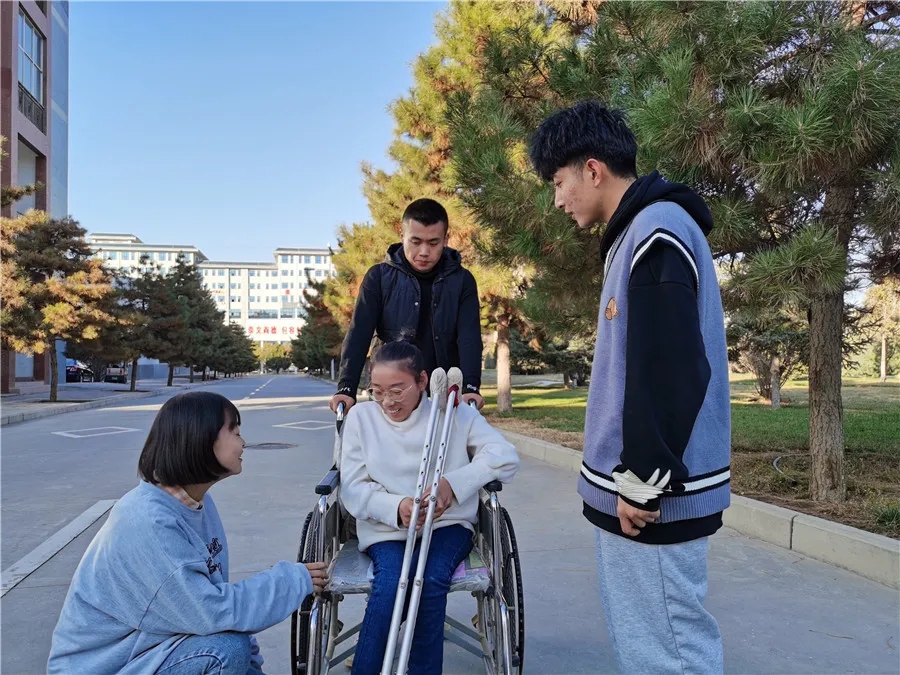 見到馮婷婷時,她和母親正在宿舍里收拾物品,床鋪干凈整潔,物品擺放有序,環境溫馨舒適。馮婷婷說:“我家是建檔立卡貧困戶,學校給我減免了5000元的學費和住宿費,協調出一套宿舍讓我們居住,學校還給母親安排了工作,不但減輕了家里的負擔,還能照顧我的生活起居。學校對我的關心,我都銘記在心,一定要好好學習,回報社會。”馮婷婷的家在慶陽市正寧縣,6歲時因病手術失敗導致下肢殘疾不能正常走路。哥哥在隴東學院上大學,全家生活來源僅靠父親種地和打零工。今年新生報到入學后,馮婷婷的母親毅然走上了陪女兒上大學之路,母親的一路陪讀,堅定著她讀書的步伐。上學本是一件很平凡、很普通的事,背后隱藏的卻是馮婷婷身殘志堅、頑強的求學之路。馮婷婷入學后,武威職業學院主要負責同志親自到宿舍看望慰問,詳細了解基本情況,并叮囑老師們要為其提供力所能及的便利條件,確保解決學習、生活方面的后顧之憂,使其順利完成學業。為使馮婷婷能迅速適應新的學習生活環境,學院根據實際情況將其宿舍調整至一樓,將班級教室從五樓調至一樓,并在該生班級授課的教學樓、實驗樓、學生公寓樓等處修建了無障礙通道,在公寓內安裝無障礙衛生間,方便其學習生活。學院為馮婷婷申請了國家一等助學金及特困學生補助金共計7300元。徐錦鳳是武威職業學院2020級藥學7班的班主任。“我第一次接觸像馮婷婷這樣身體殘疾的學生,作為班主任,我力所能及地在學習和生活上給予她關心和幫助,也鼓勵同學們對她多幫助多關懷,讓她能夠融入到班集體中,快樂的學習生活。”徐錦鳳告訴記者,今后,他們將繼續關注關心馮婷婷,及時幫助她解決一些學習和生活中的困難,讓她順利完成學業。相信,有黨和國家的好政策,有武威職業學院這個溫暖的大家庭,馮婷婷必將能夠快樂地學習生活,圓滿完成學業。