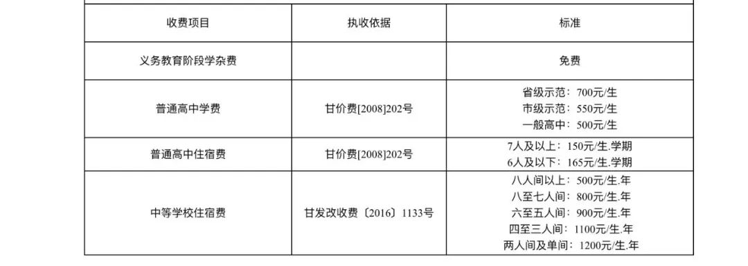 今年秋季學(xué)期甘肅省中小學(xué)收費標準分別為: