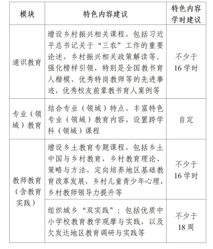 在合理設置通識教育、專業(領域)教育、教師教育(含教育實踐)課程結構的基礎上,圍繞培養目標和畢業要求,結合中西部欠發達地區教育實際,重點體現以下特色課程內容。