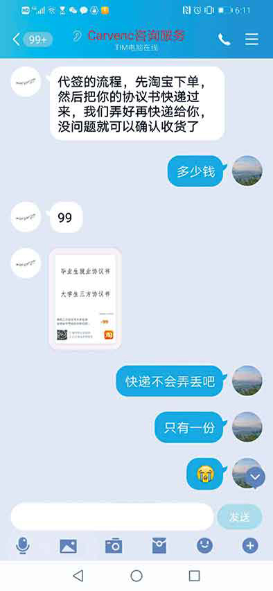“輔導員將三方協(xié)議寄給我們,讓大家自己找單位蓋章簽字,否則不給畢業(yè)。”安徽新華學院應(yīng)屆畢業(yè)生鄭偉明說,雖然近期準備專升本考試,沒時間去找企業(yè)簽訂三方協(xié)議,但實在經(jīng)不住輔導員三番五次催促,不得不托熟人找關(guān)系,輾轉(zhuǎn)多方才找到一家企業(yè)簽字蓋章。